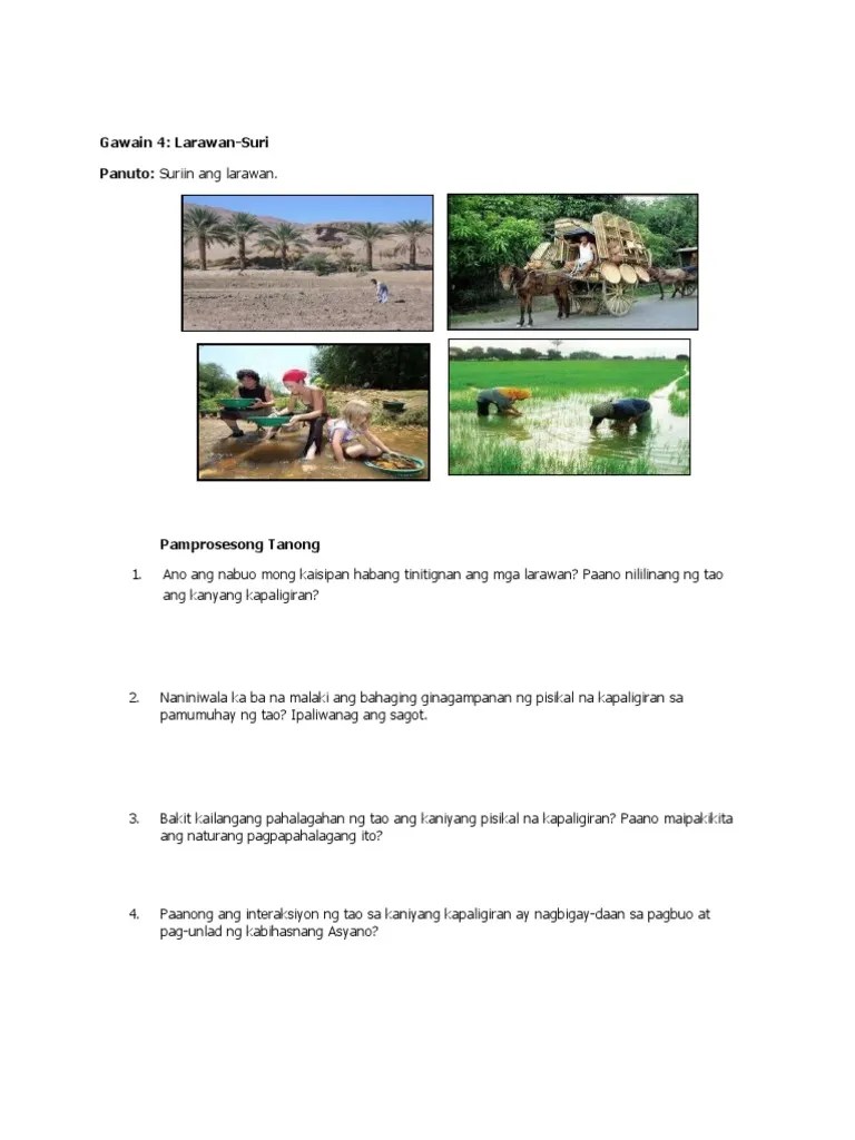 Tuklasin Gawain 4 Larawan Suri / 486509332 Weekly Home Learning Plan Pdf / Is vulnerability 1.hazard 2.disaster 3.volnerability 4.risk 5.resilience advertisement advertisement kryos kryos answer:. Ano ang ipinahihiwatig ng larawan?2. Suriin ang mga larawan sa ibaba at sagutin ang mga pamprosesong tanong pagkatapos nito. Ang mga konsepto ng disaster management ang mga larawan ay … Ano ang salitang tinutukoy sa larawan? 1 see answer wews advertisement advertisement cgbienes cgbienes answer: